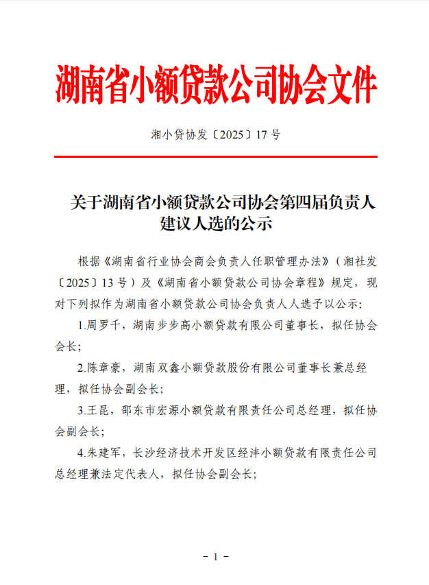 您好!歡迎進(jìn)入湖南省小額貸款公司協(xié)會(huì)!
